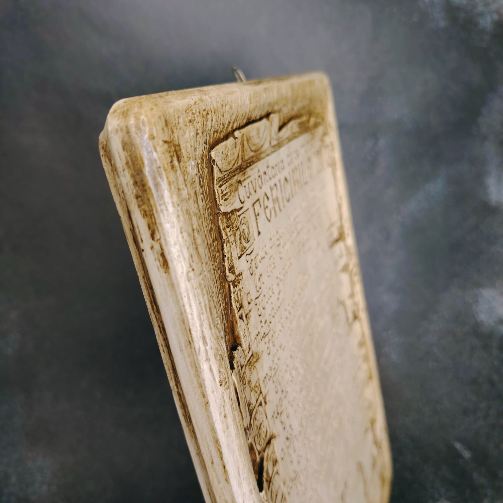 Textul este gravat în relief, ușor de citit și gândit să inspire.