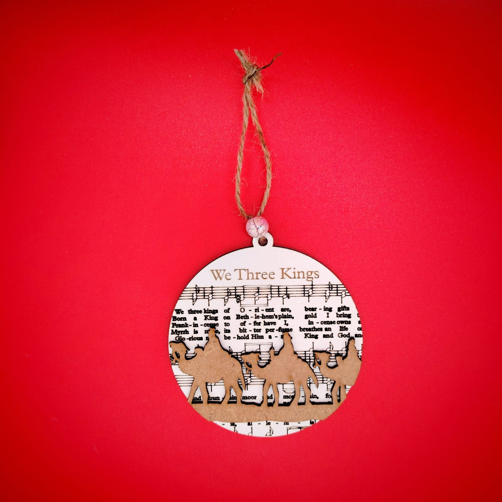 Decoratiune din mdf Glob cu fundal muzical M4, cu snur, 8cm