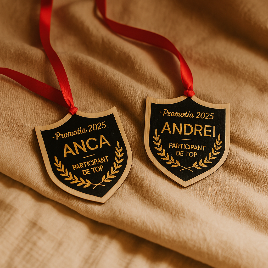 Scutul gravat cu numele copilului, clasa și promoția lui va rămâne o amintire de suflet, dincolo de note și poezii recitate. ❤️