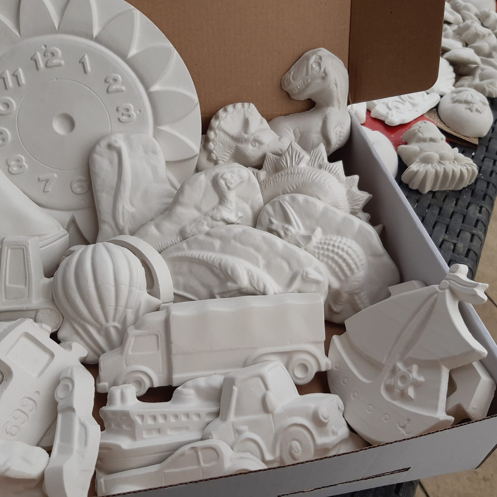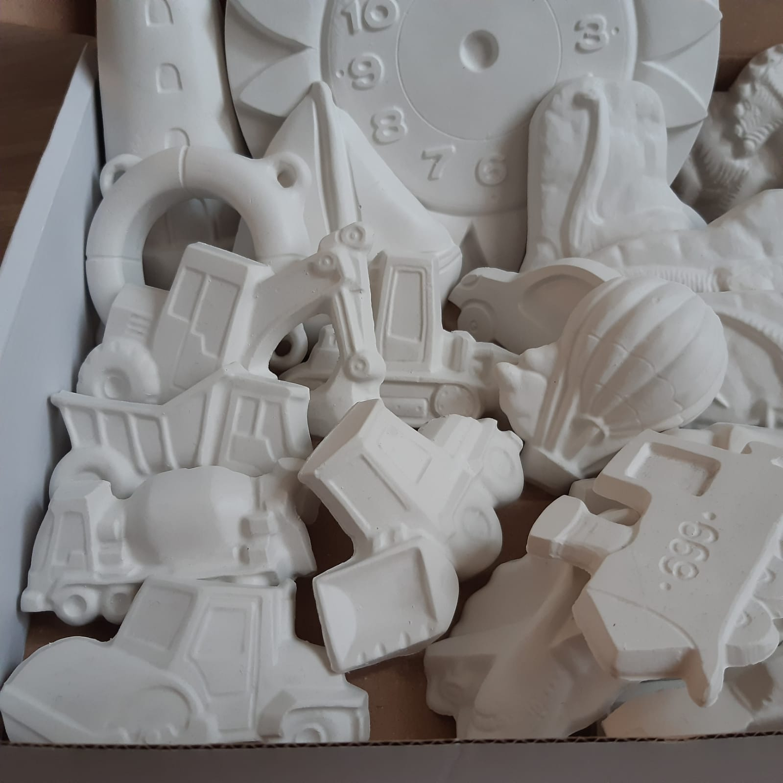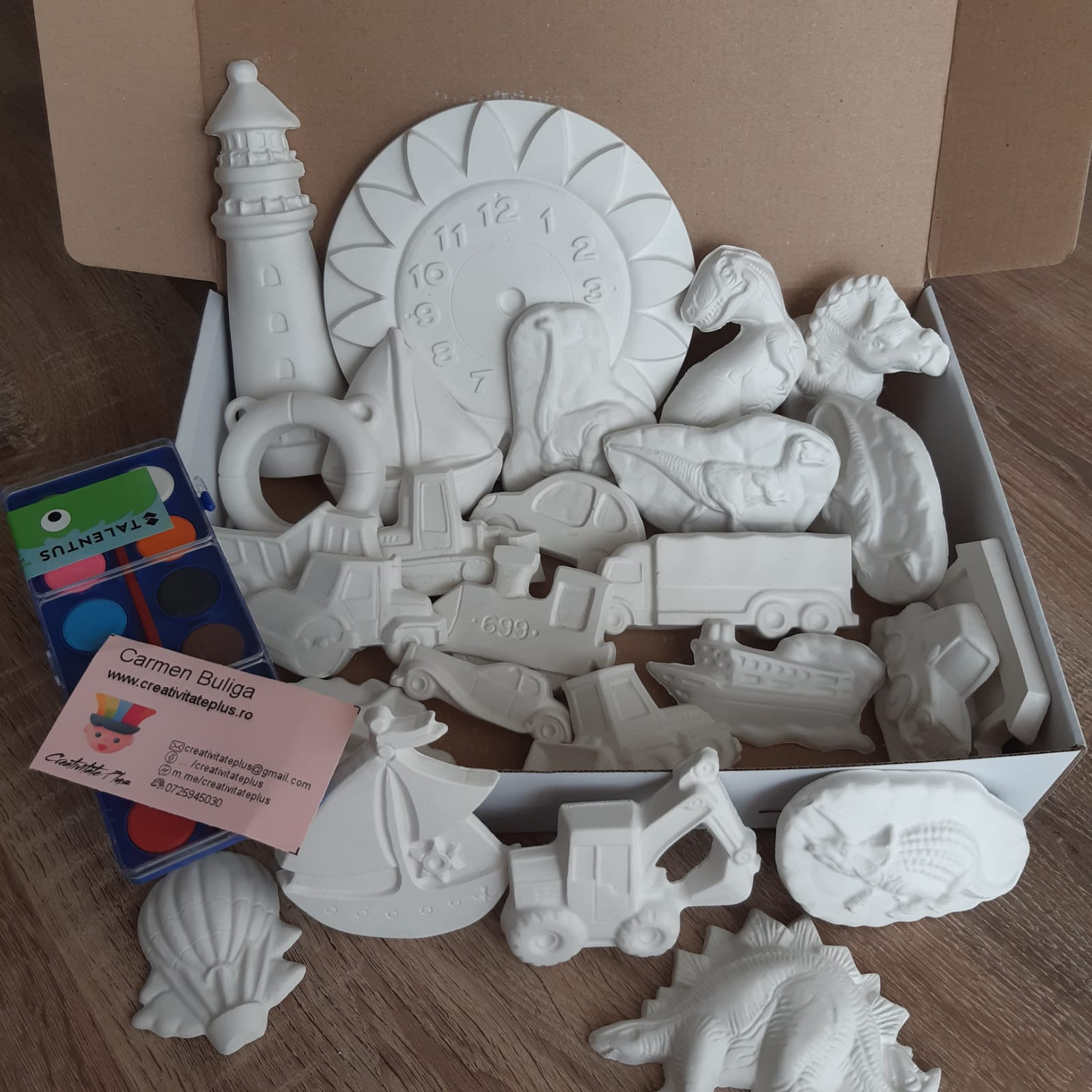 Un cadou special pentru orice baiat: dinozauri din ipsos, masinute, camioane, tractoare, vapoare... numai bune de colorat.