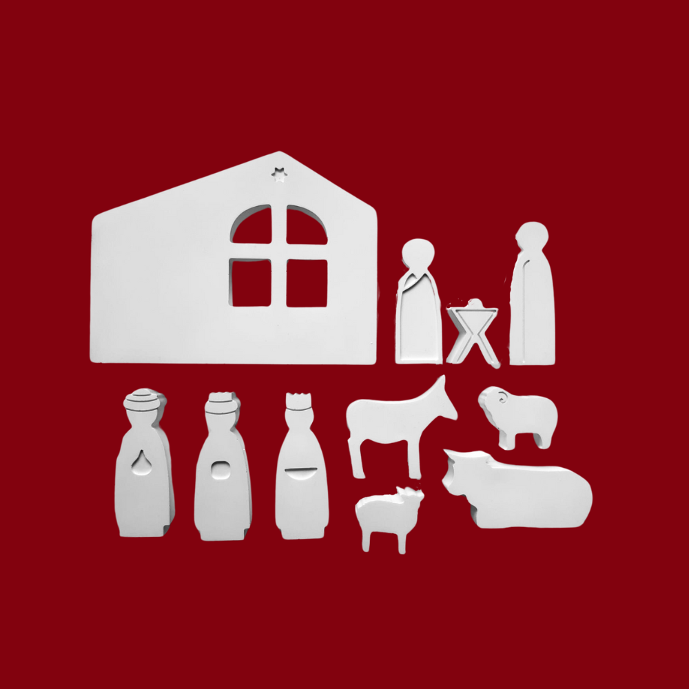 Dimensiune casa 14.5 x 11 cm, Iosif 7.5 x 2.5 cm, grosime 2 cm.