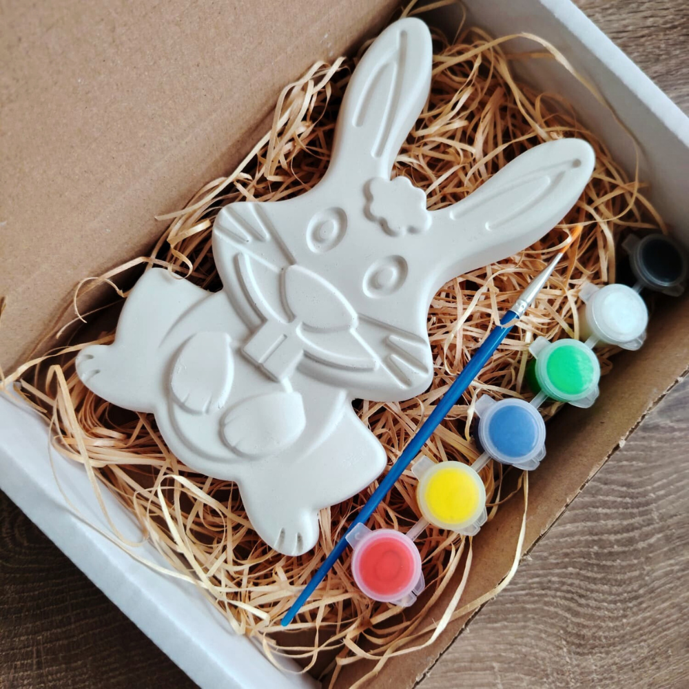 Set creativ din ipsos Iepure Mare, culori si pensula, 16.5x10cm